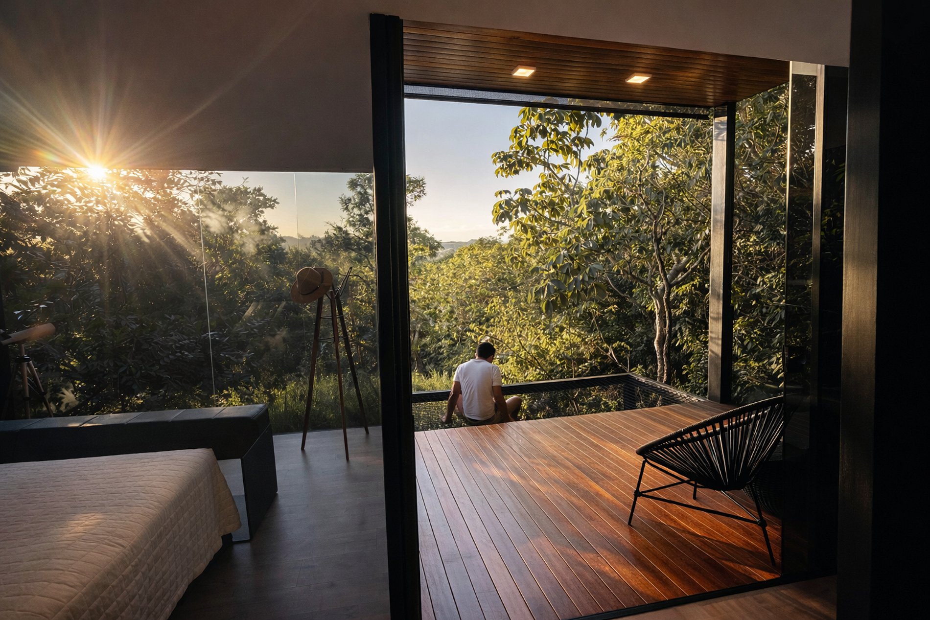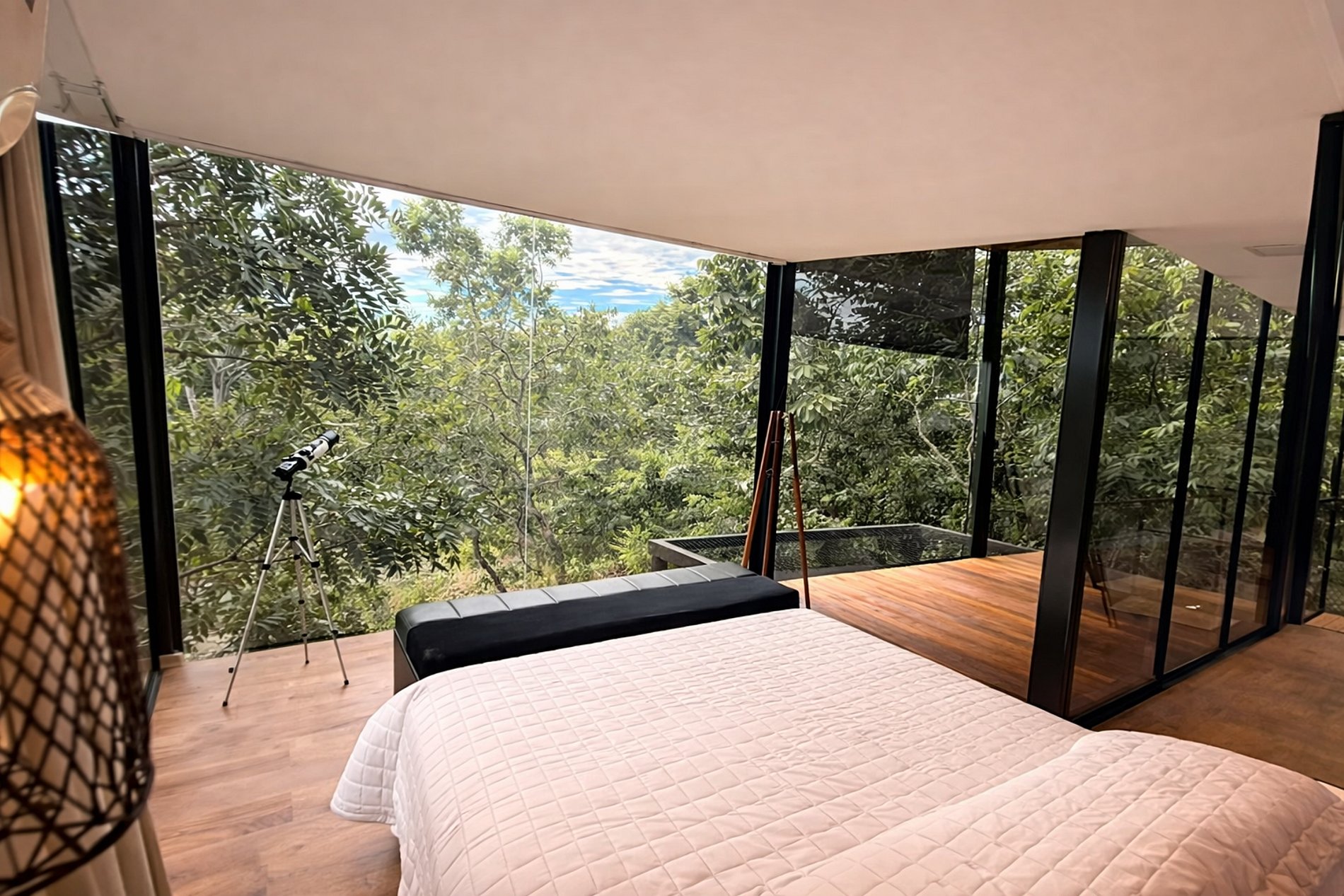 É uma cabana suspensa de vidro, destinada para atender duas pessoas. O espaço interno é composto por: quarto, banheiro e cozinha, possui vista para a densa natureza existente no espaço exterior e proporciona melhor apreciação do céu, pôr do sol e estrelas. Para complementar a experiência, existe um deck externo com churrasqueira, duas banheiras ao ar livre com opção de água quente, uma rede suspensa e um área destinada a fogueira.