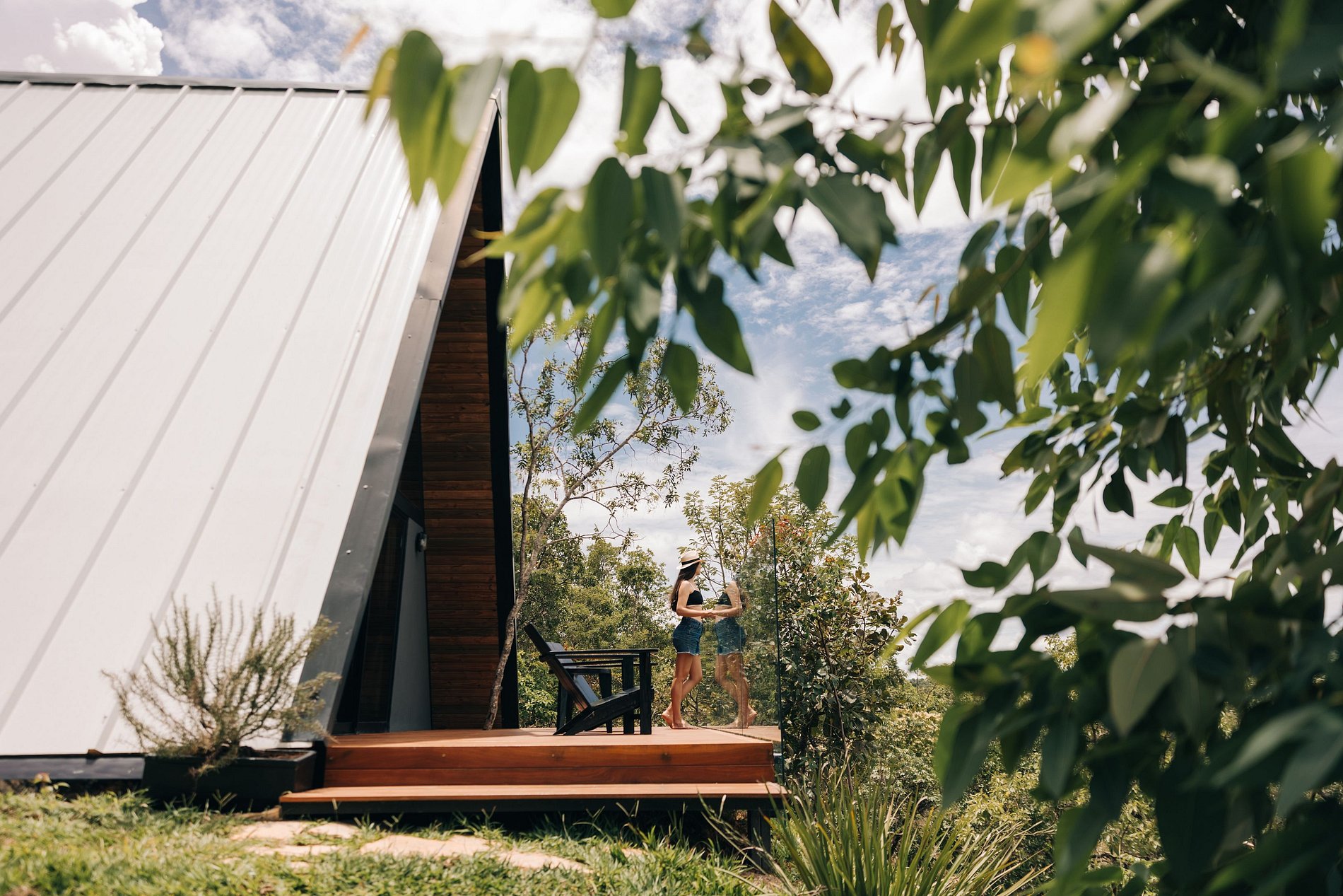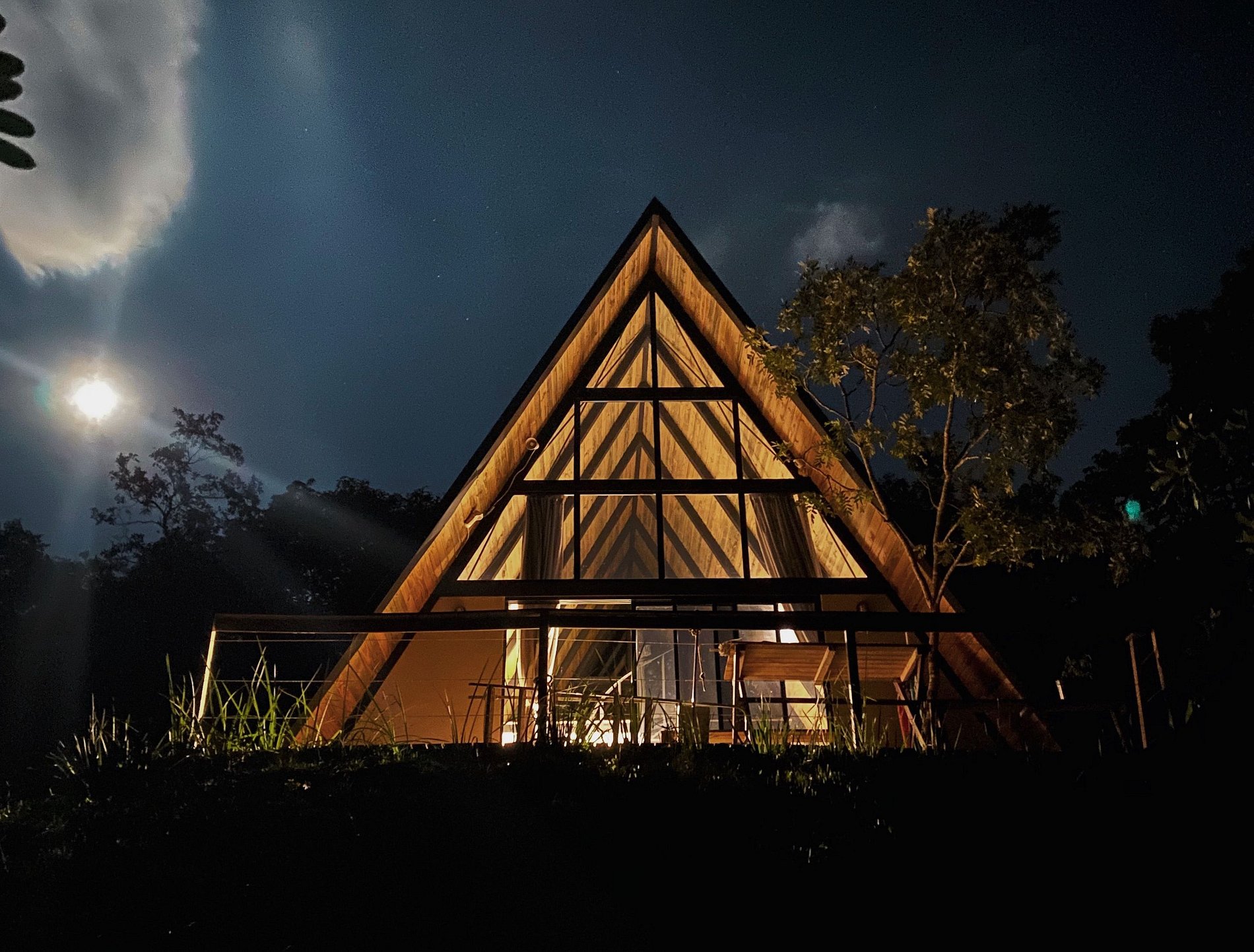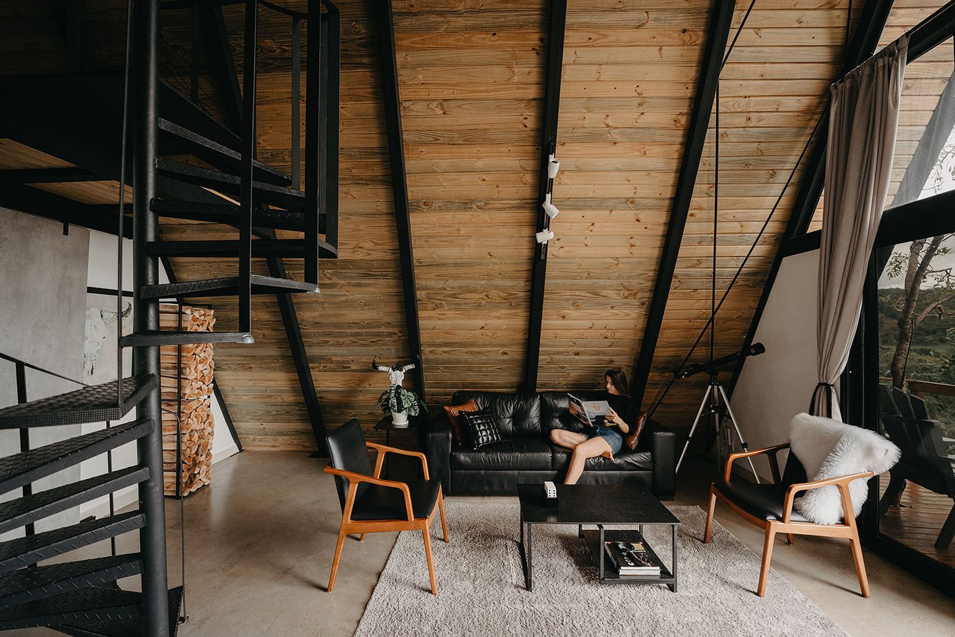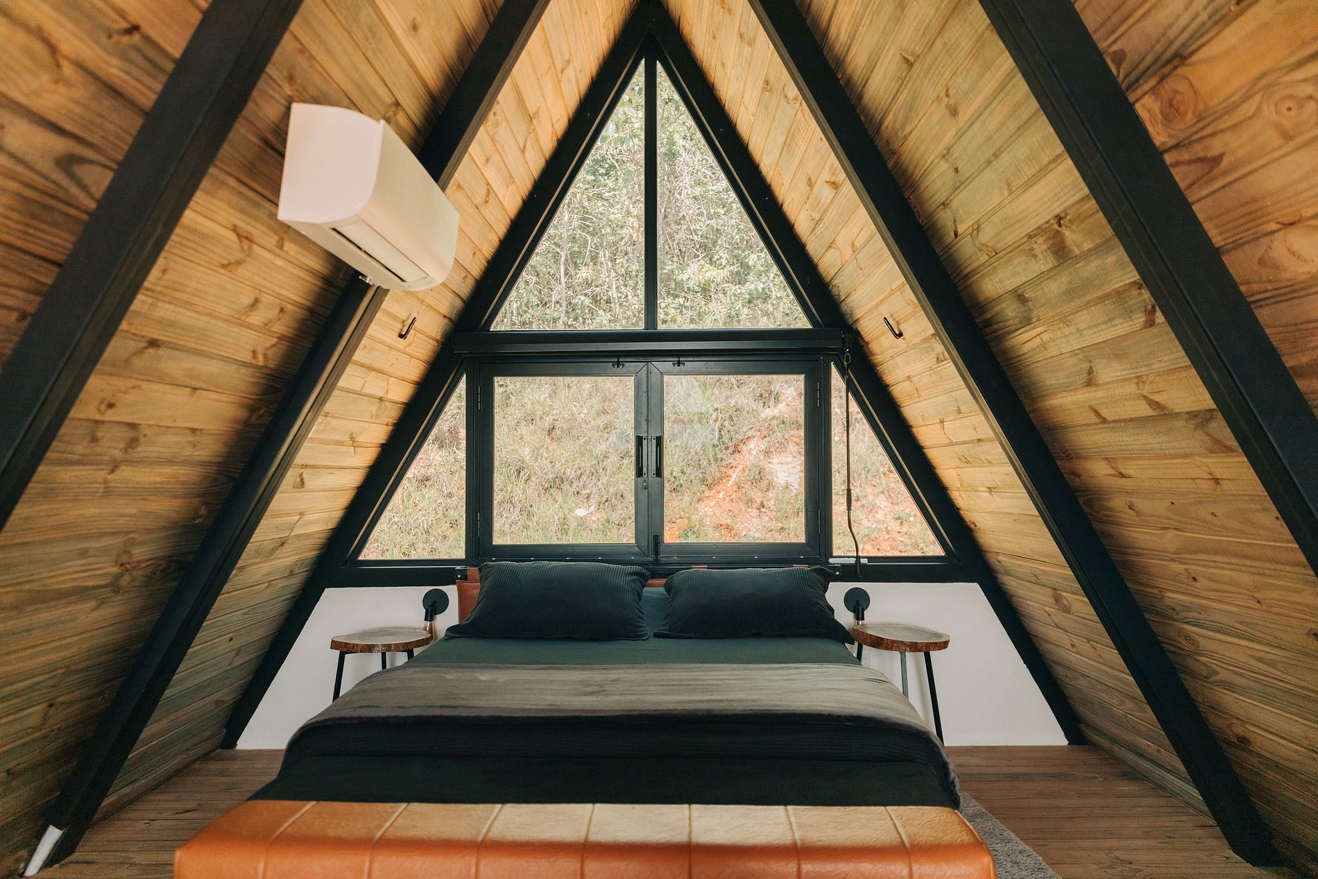 É uma A-Frame (estrutura em formato de A) destinada para atender um casal, com espaço interno térreo e mezanino, composto por: sala, cozinha, dois quartos e banheiro. É cercada por uma densa natureza e por isso possui grandes aberturas envidraçadas para proporcionar um contato visual com o verde a todo o momento durante a estadia. Existe um deck na parte frontal idealizado especialmente para apreciação da vista, do pôr do sol e das estrelas. Para complementar a experiência, há uma área destinada a fogueira e um deck com churrasqueira para confraternizar.