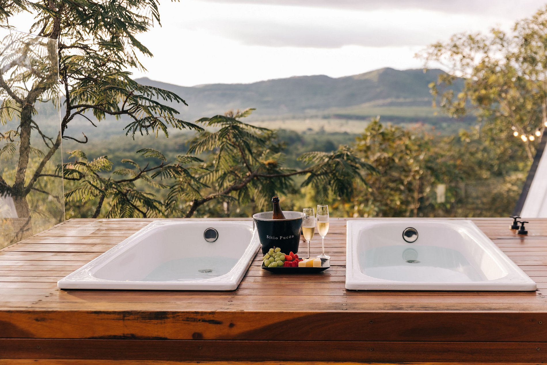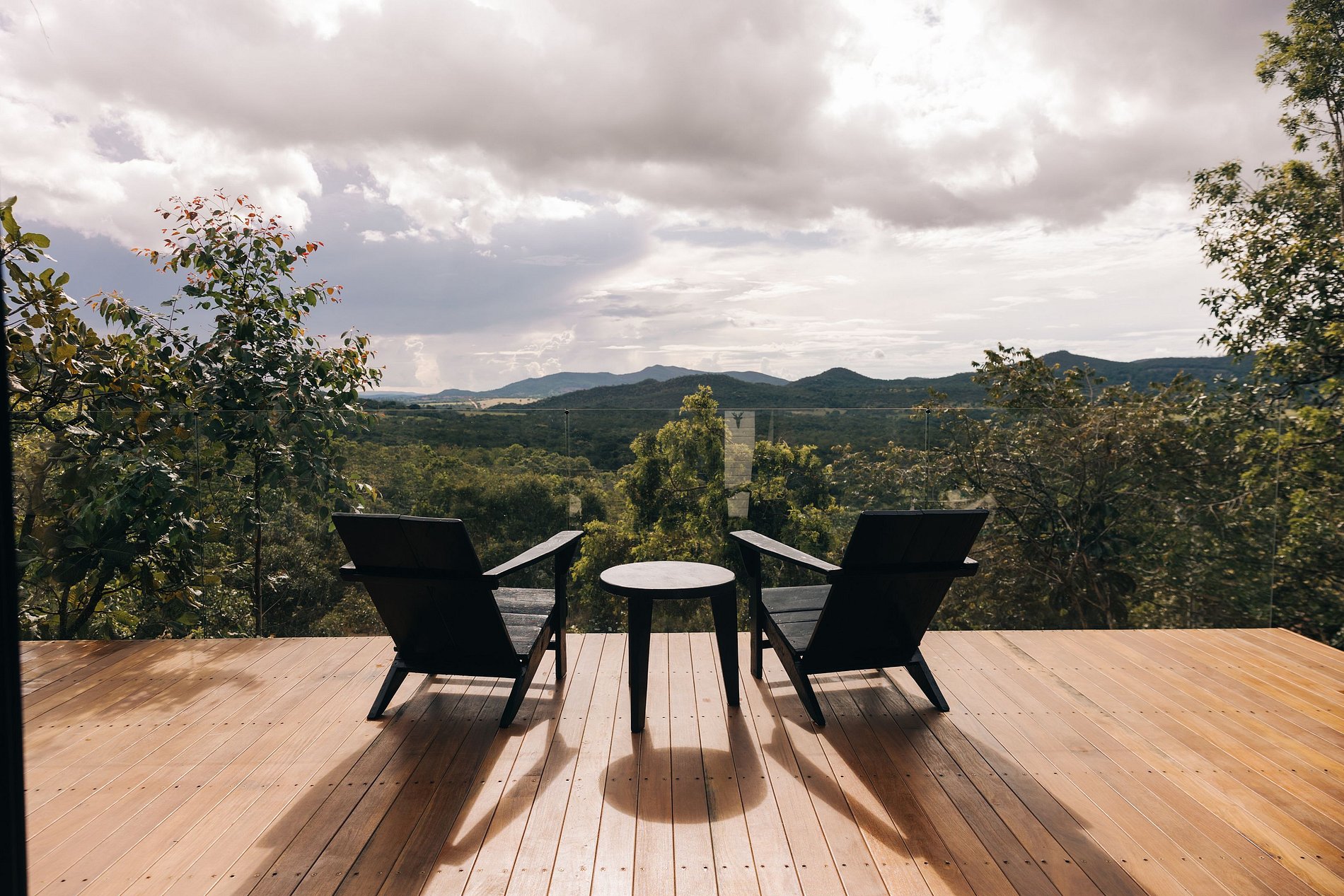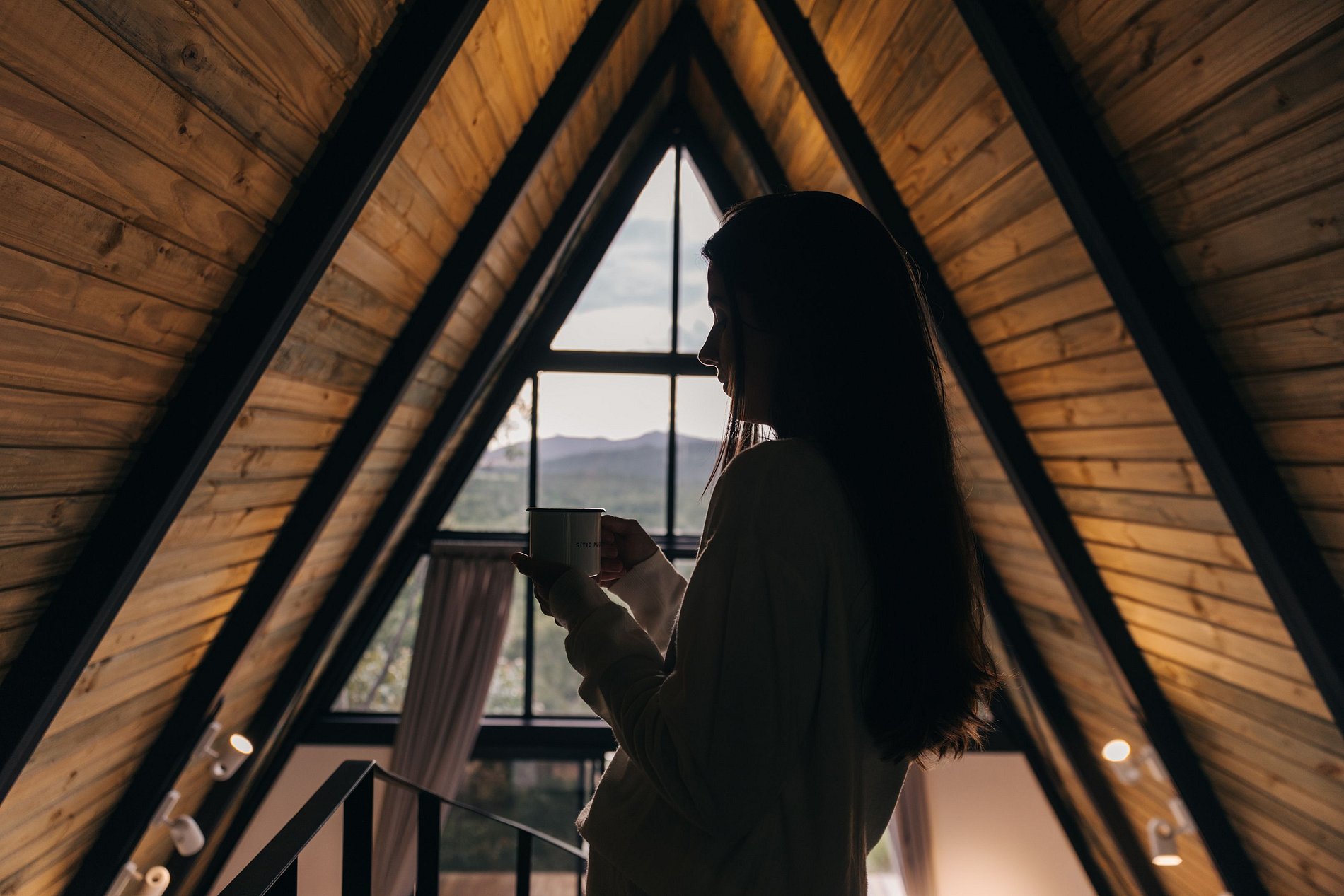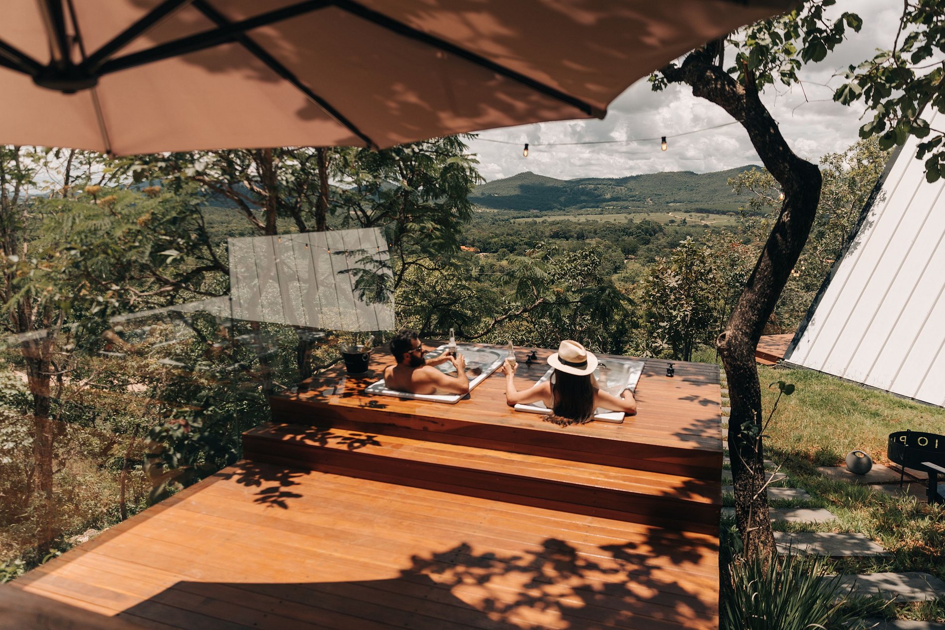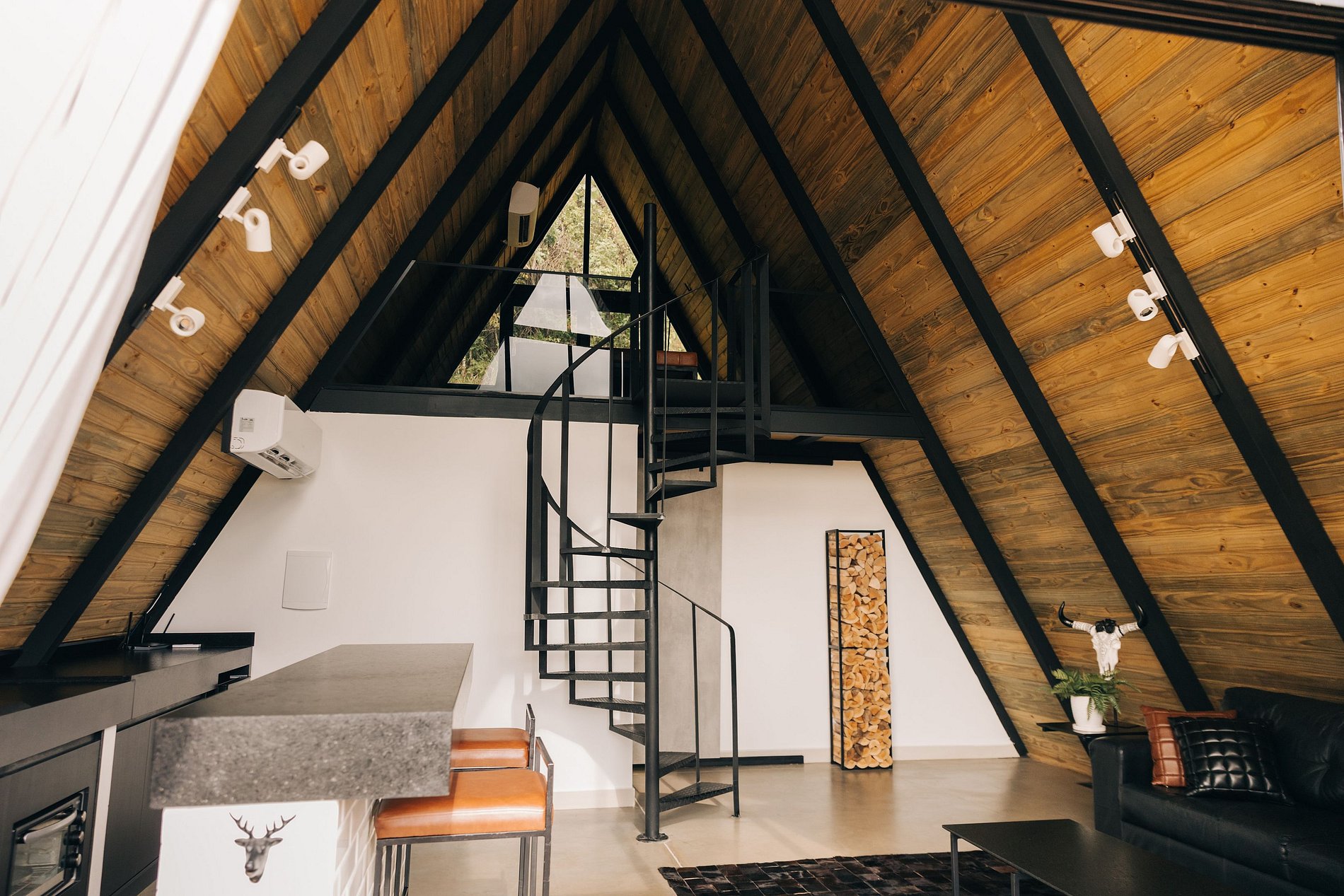 É uma A-Frame (estrutura em formato de A) destinada para atender um casal, com espaço interno térreo e mezanino, composto por: sala, cozinha, dois quartos e banheiro. É cercada por uma densa natureza e por isso possui grandes aberturas envidraçadas para proporcionar um contato visual com o verde a todo o momento durante a estadia. Existe um deck na parte frontal idealizado especialmente para apreciação da vista, do pôr do sol e das estrelas. Para complementar a experiência, há uma área destinada a fogueira e um deck com churrasqueira para confraternizar.